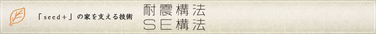 SE構法は、木造で許容応力度設計を可能にしました。強度が保証された構造集成材とオリジナルSE金物を採用することで、木造建築の欠点であった曖昧な部材強度、接合部強度を解消しました。許容応力度設計の建物は、すべての部材強度、接合部強度から絶対に倒壊しない事を数値で証明します。この技術を取り入れたSE構法の家は、木質感にあふれ従来の伝統工法の味わいを残しながらも、大開口部や高天井、自由な間取り、ビルトインガレージなど、多彩で自由な空間創りを可能にしています。安らぎはそのままに、強さと夢にあふれたSE構法の家こそ、新世紀の伝統工法住宅なのです。 シードプラスの家は、全棟、このSE構法です。注文住宅において私達が、倒壊しないことを証明できる、耐震性において最も優れた木構造であると考えているからです。